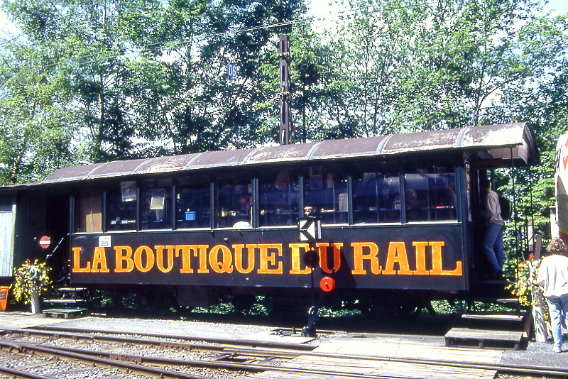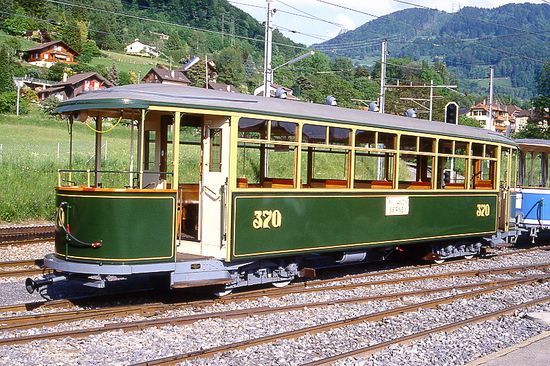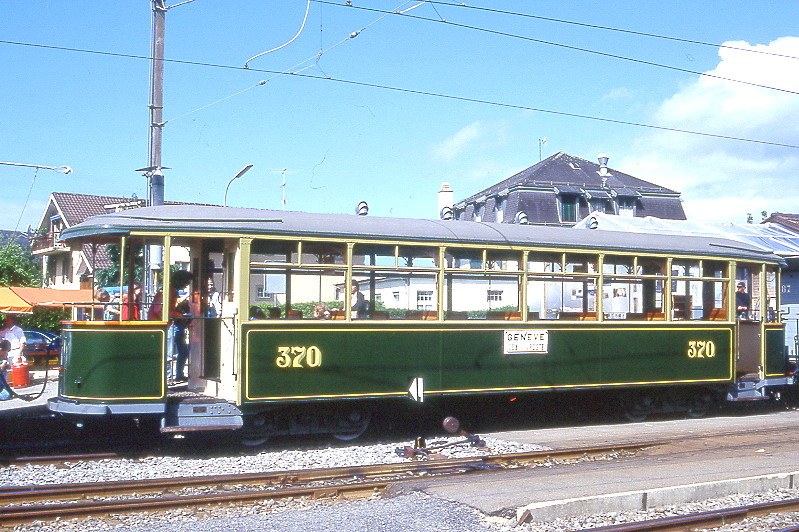 BC Museumsbahn - ex CGTE C4 370 am 24.05.1999 in Chaulin - 3.Klasse Tramwagen 4-achsig mit 2 offenen Plattformen - Baujahr 1911 - SIG - Gewicht 11,10t - Sitzplätze 36 - LüP 13,30 - zulässige Geschwindigkeit 35 km/h - Lebenslauf: ex CGTE C4 370 - 1964 B 370 - 1973 BC C4 370
